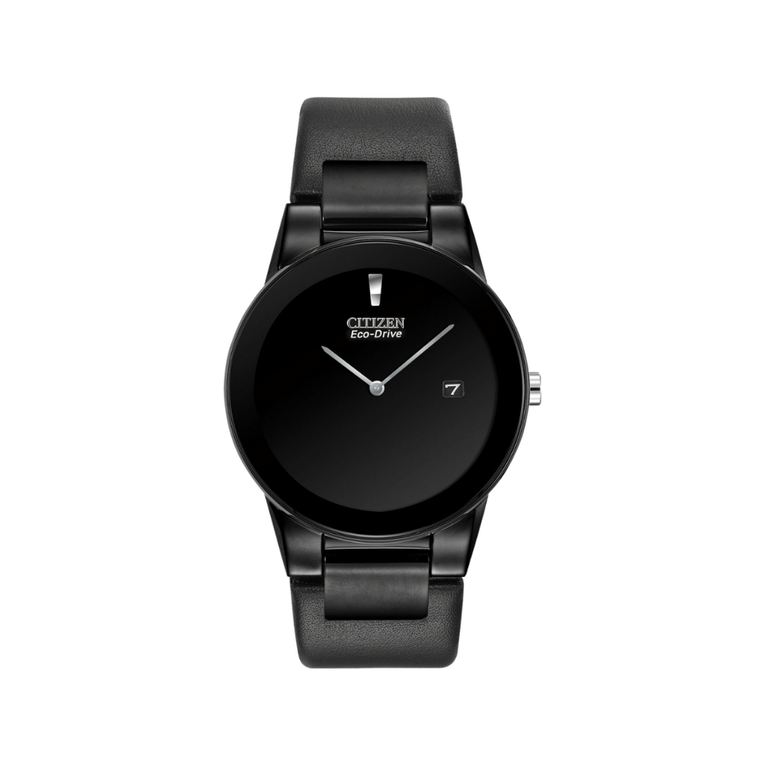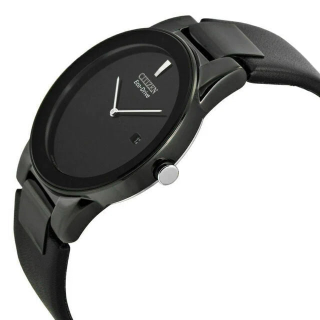 Le design raffiné mais élégant d'Axiom offre une option de mode de jour comme de nuit pour le lanceur de tendances avide. En vedette en acier inoxydable plaqué ion noir avec un cuir noir Bande, un cadran noir, des accents en acier inoxydable et la caractéristique intrigante du verre de bord à bord.