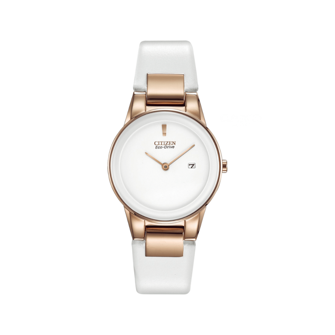 Le design raffiné mais élégant d'Axiom offre une option de mode de jour comme de nuit pour le lanceur de tendances avide. En vedette en acier inoxydable de ton rose-or avec un cuir blanc Bracelet, accents de ton or rose et la caractéristique intrigante du verre bord à bord.