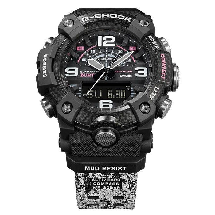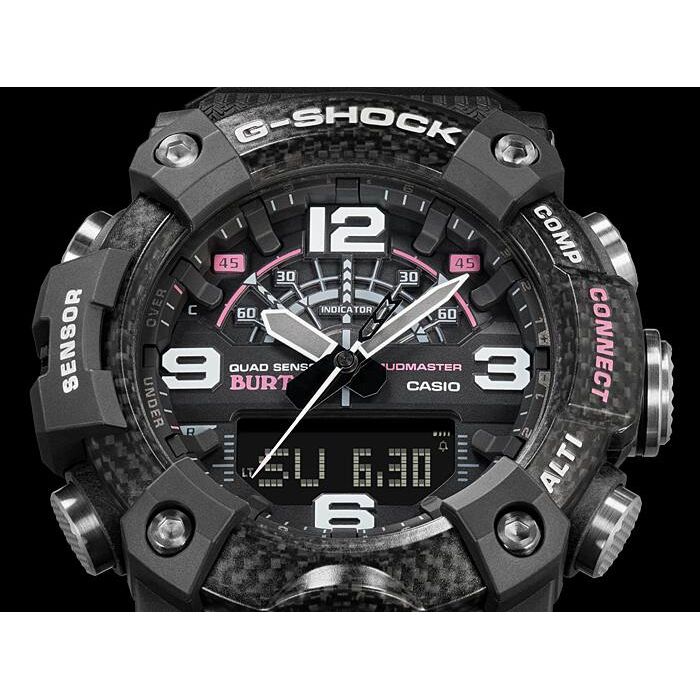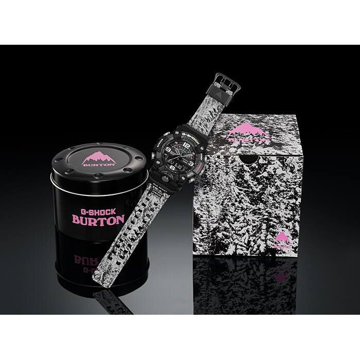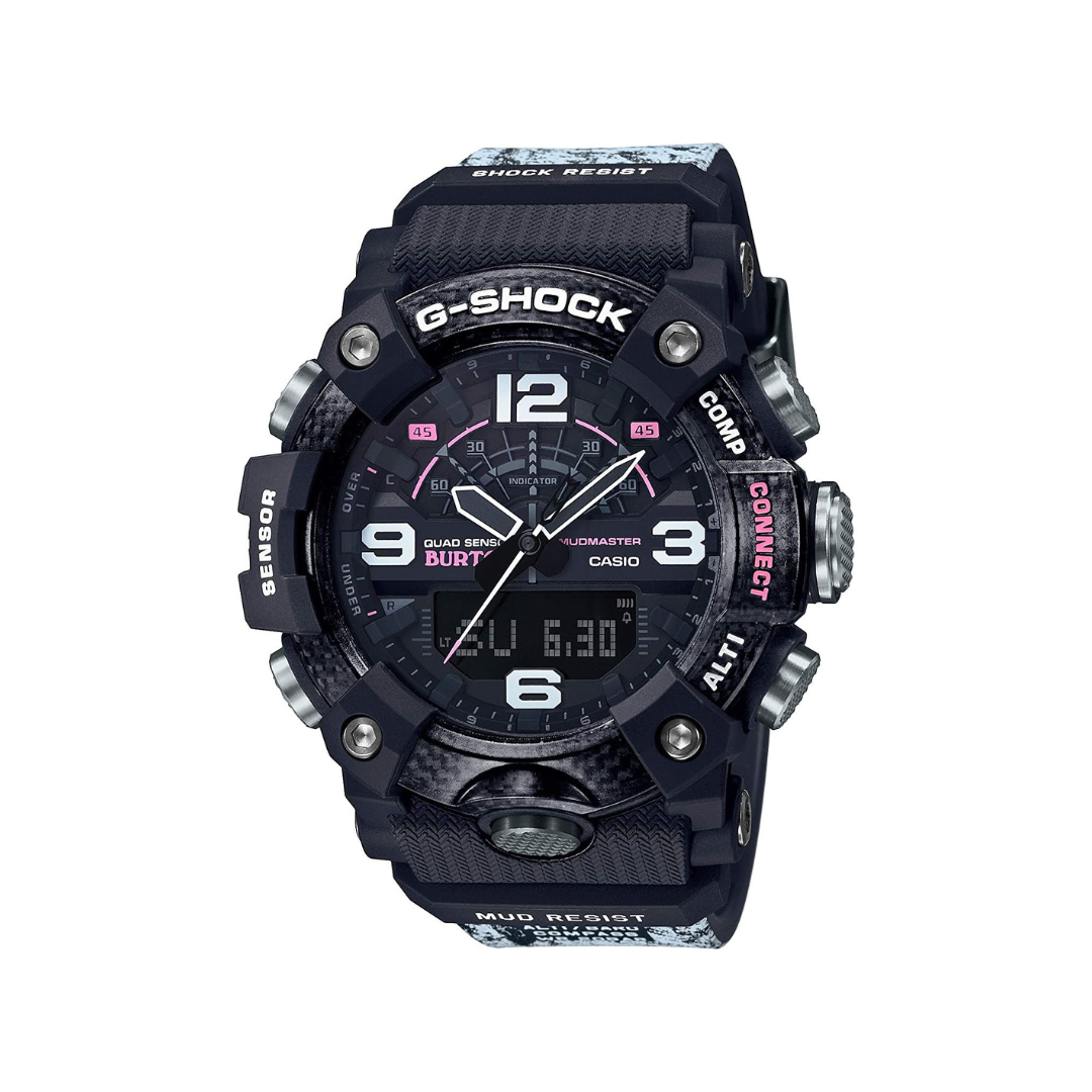 Ce nouveau modèle est le résultat d’une collaboration avec la célèbre marque de snowboard BURTON. Il est conçu et fabriqué pour une utilisation dans les environnements naturels extrêmes rencontrés lors de la planche dans l’arrière-pays, et basé sur le MUDMASTER GG-B100 résistant aux chocs, à la poussière et à la boue, qui utilise des matériaux en carbone pour créer une nouvelle structure robuste et robuste. Le design du bracelet rappelle l’aspect d’une montagne enneigée, tandis que la couleur pastel du cadran et du boîtier ressemble à de la neige pour créer un look saisissant. L’anneau et l’emballage arborent le logo BURTON, ce qui permet à cette montre de s’identifier comme un modèle de collaboration spécial. Pour le snowboard et à peu près toute autre activité qui vous emmène dans les grands espaces, ce garde-temps collaboratif intègre le style BURTON avec la réputation mondiale de G-SHOCK pour sa robustesse inégalée dans un garde-temps attrayant et hautement fonctionnel.