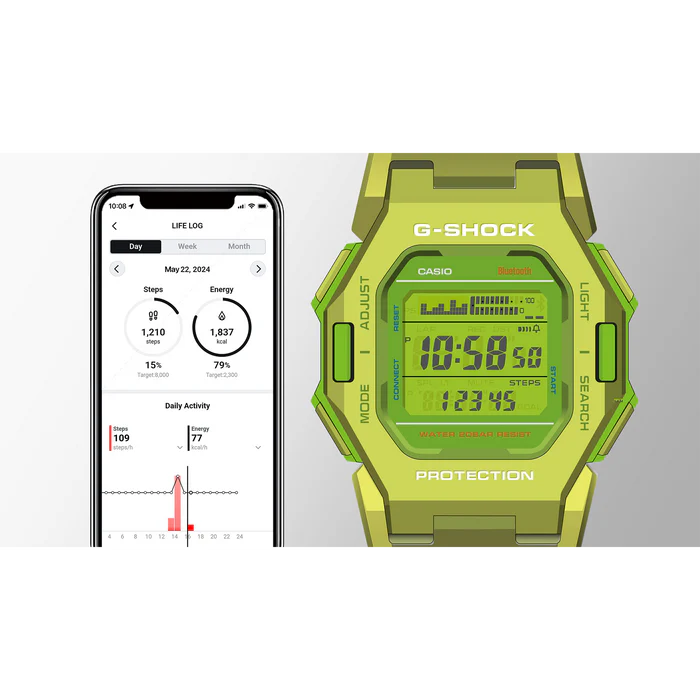 Choose classic black or white, or go with the GDB500S-3 in dynamic fluorescent yellow with translucent band connectors.