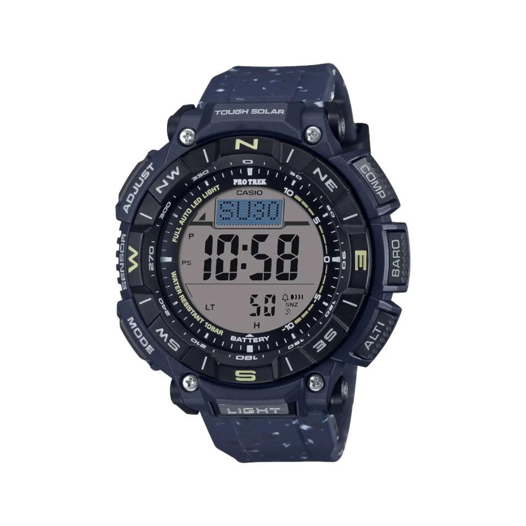 Il s'agit de la première montre PRO TREK dotée d'un bracelet Dura Soft fabriqué à partir de chutes de résine réutilisées provenant des processus de fabrication. Conformément à l'engagement de PRO TREK visant à réduire l'impact environnemental en utilisant des matériaux durables, les chutes de résine réutilisées sont un excellent complément à une ligne de montres.