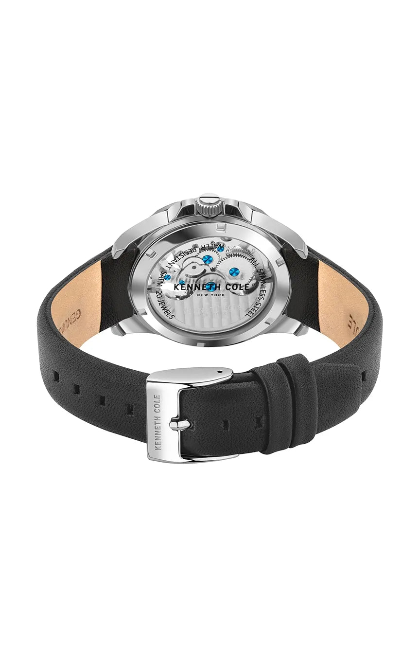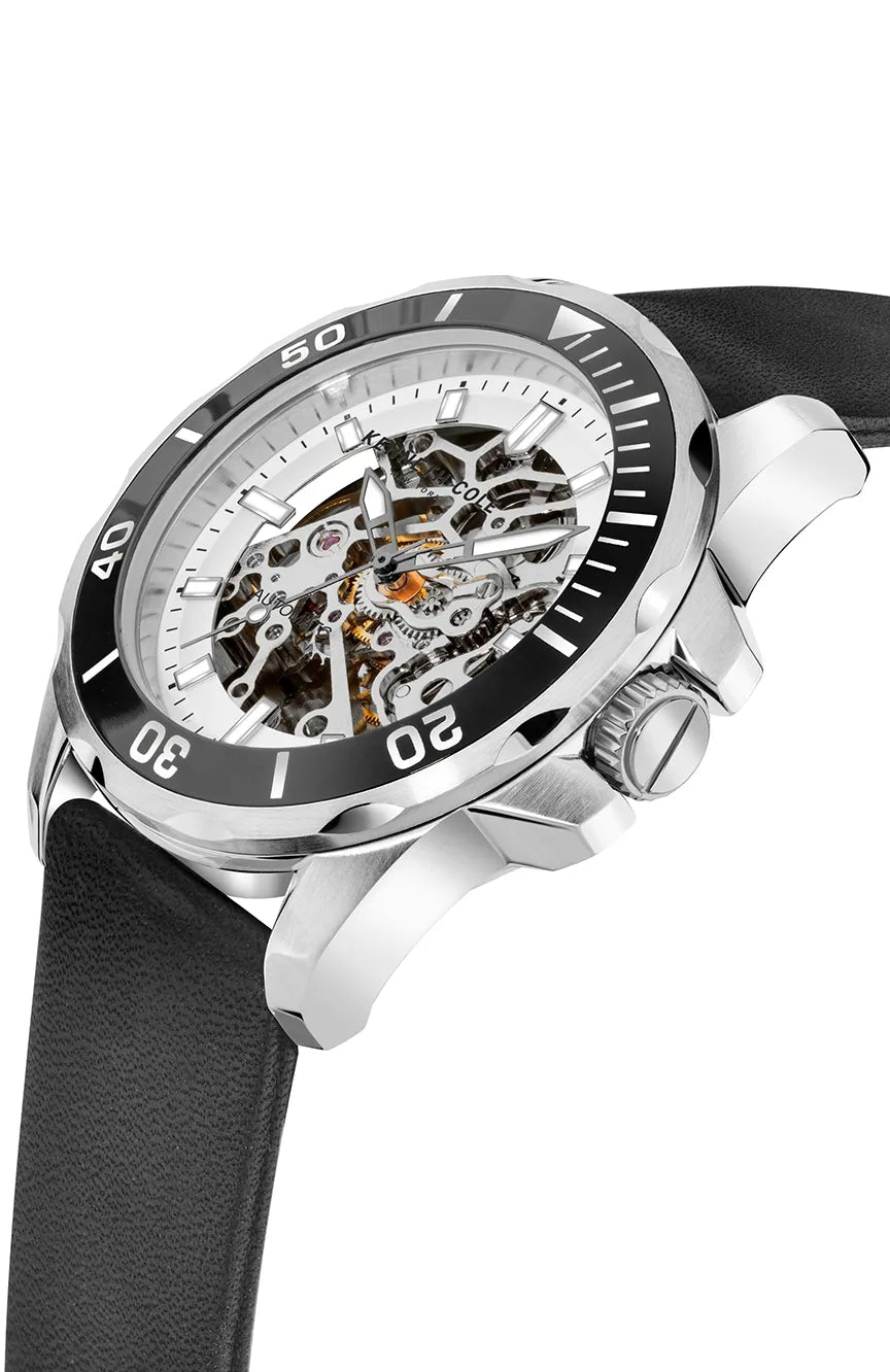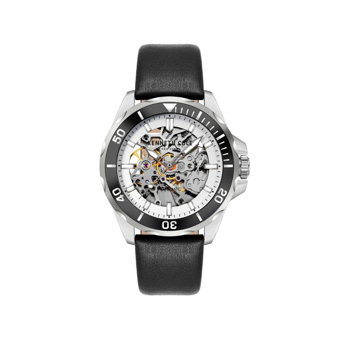 From the Automatic Collection. Kenneth Cole New York men's skeleton automatic watch features a stainless steel case. The skeleton dial reveals the inner working movements of the watch. What's even better? No battery is required as the watch works with the movement of your wrist.