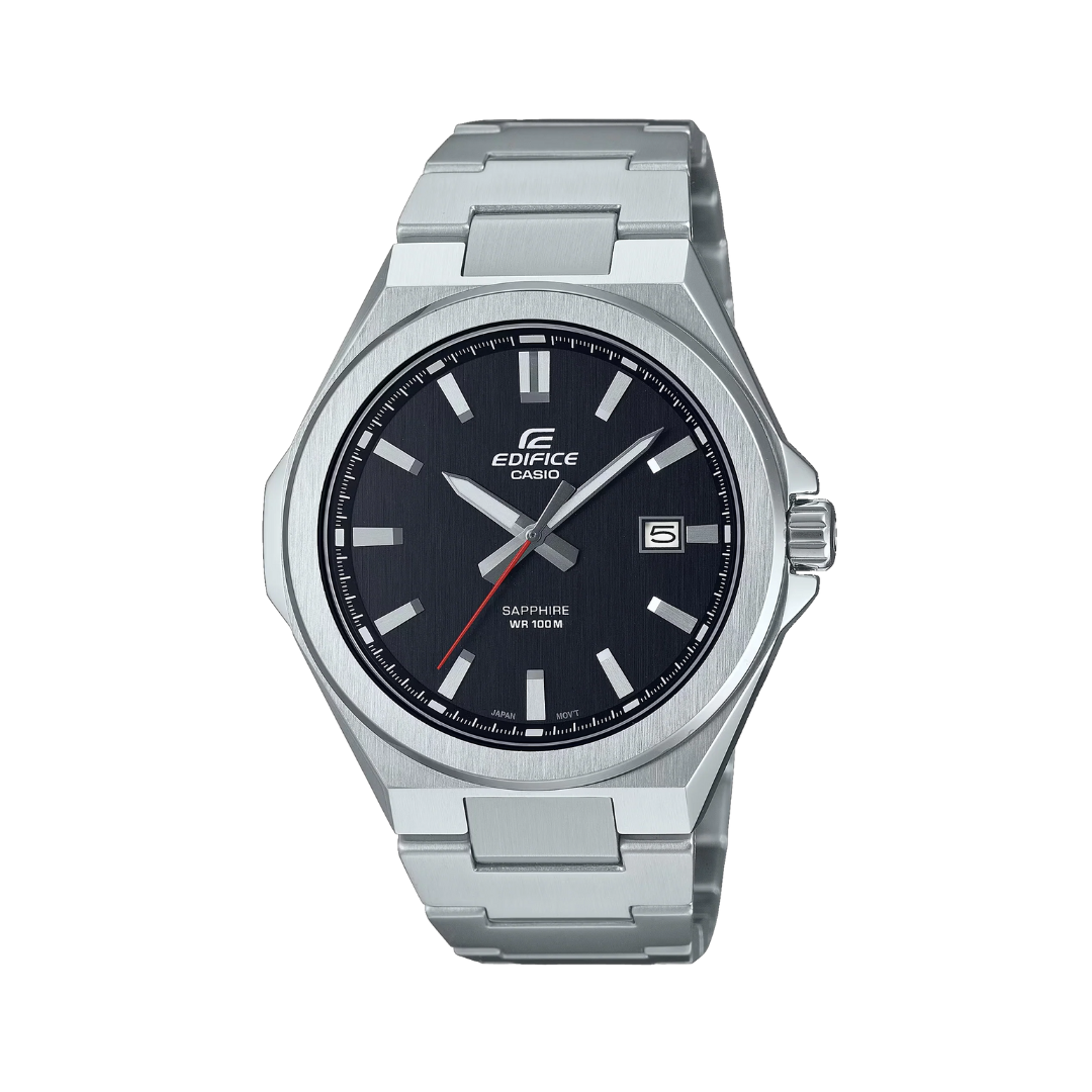 The EFB108D is the newest sport chronograph addition to the Edifice line. Styled with a simple motor sports design, this all stainless steel timepiece is 100 meter water resistant with a 3 year battery.