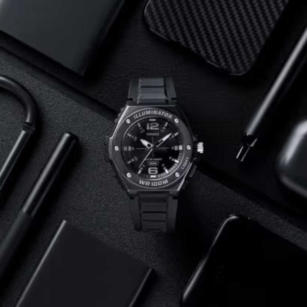 Stylish timepiece crafted with a creative blend of metal and resin. Featuring a resin case and a metal bezel, this watch offers water resistance up to 100 meters for rainy days and an LED light for easy reading in dark places, so you’re ready to take on whatever comes your way.