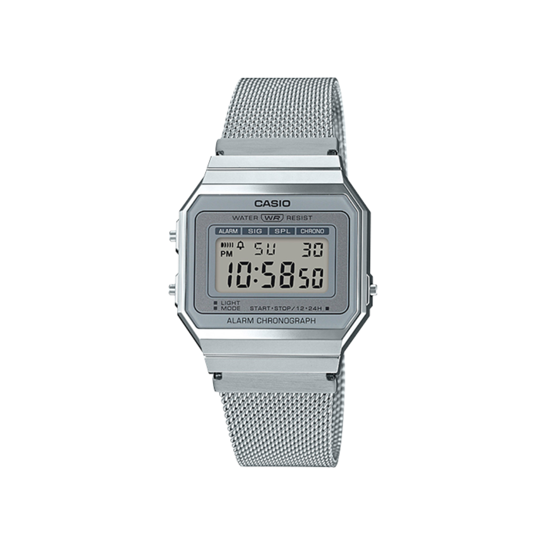 Casio Vintage with mineral glass and milanese band. LED light and daily alarm.