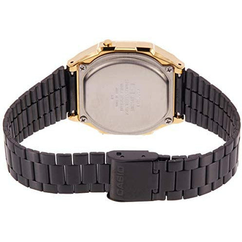 This Casio Unisex A168WEGB-1BVT Watch Gold Blk by Casio features Water Resistant. LED light. 1/100-second stopwatch. Elapsed time, split time, 1st-2nd place times. Daily alarm. Hourly time signal. Auto-calendar 12/24-hour format. Regular timekeeping: Hour, minute, second, pm, date, day.