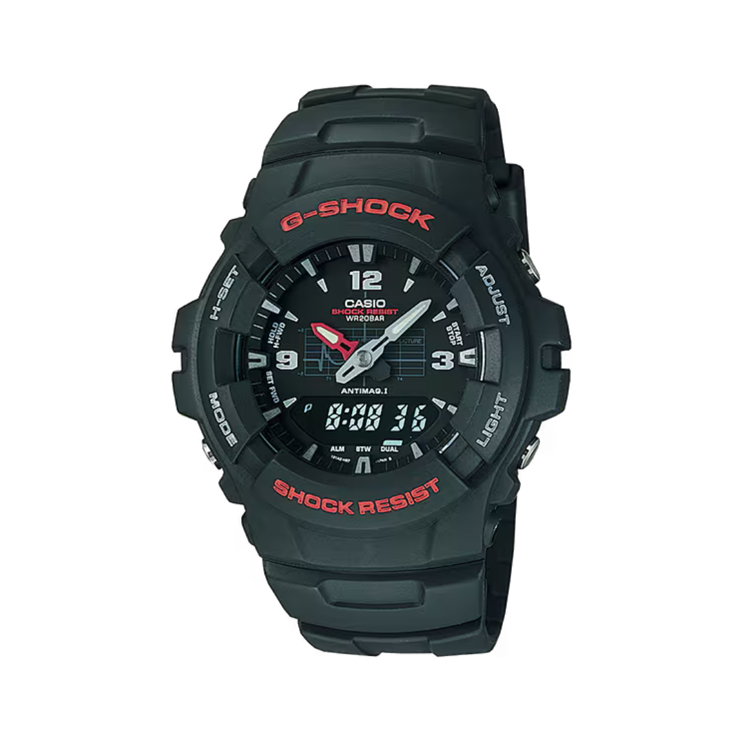 Ever heard of the K.I.S.S theory? Sometimes simple is better. This G-Shock has all the hallmarks of a classic. With Shock resistance, 200 meter water resistant, Anti-Magnetic resistance and more it's a perfectly balanced timepiece. Black resin band analog and digital watch with black face.