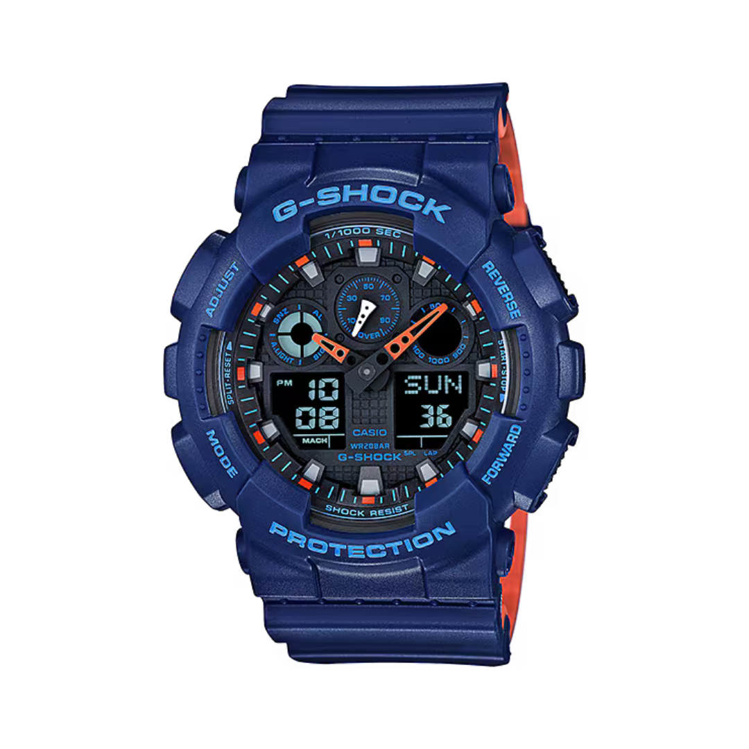 The base model is the anti-magnetic GA-100 analog-digital combination watch, and the five models of this lineup are available in black, blue, orange, white, and beige.