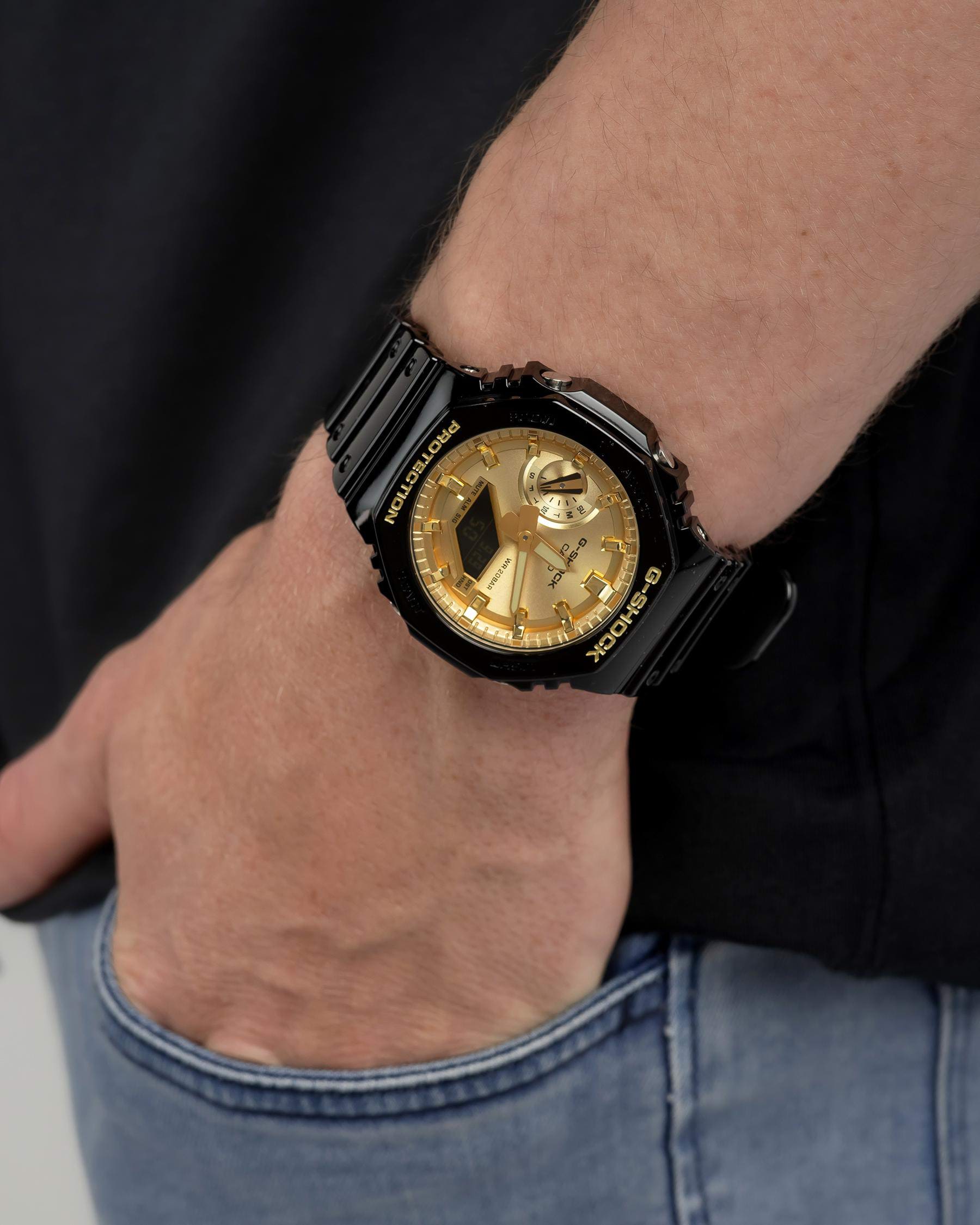 Go metal-clad in cool, sophisticated color with a slim GA-2100 that inherits the design concept of the first-ever G-SHOCK.