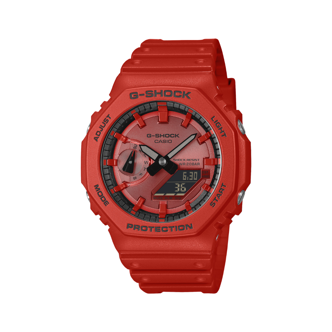 Indulge your passion for bold, bright toughness with an iconic G-SHOCK style in the vivid red loved by trendsetters and athletes the world over.