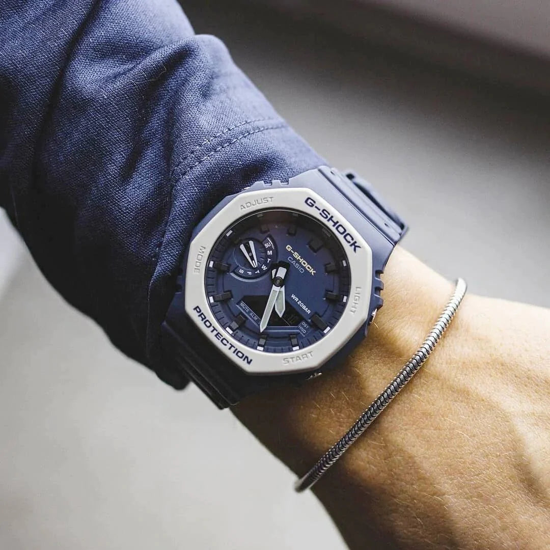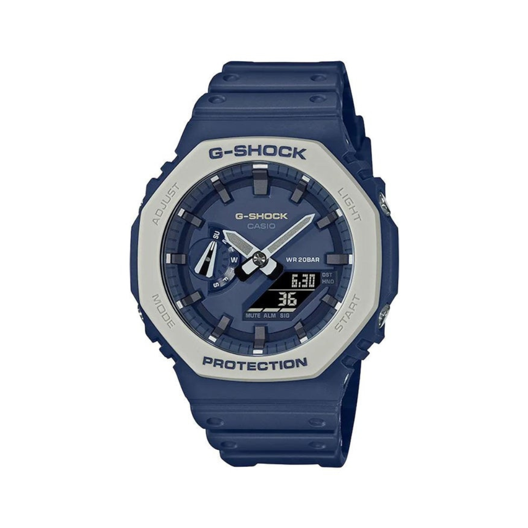 Introducing the Earth Tone Color Series. These timepieces combine the toughness that has been very much a part of the G-SHOCK since 1983 with designs and hues that bridge the gap between urban and outdoor, everyday and extraordinary, and a wide range of different fashions. The basic design combines a slim case with an octagon double- molded bezel, decked out in a dark navy blue.