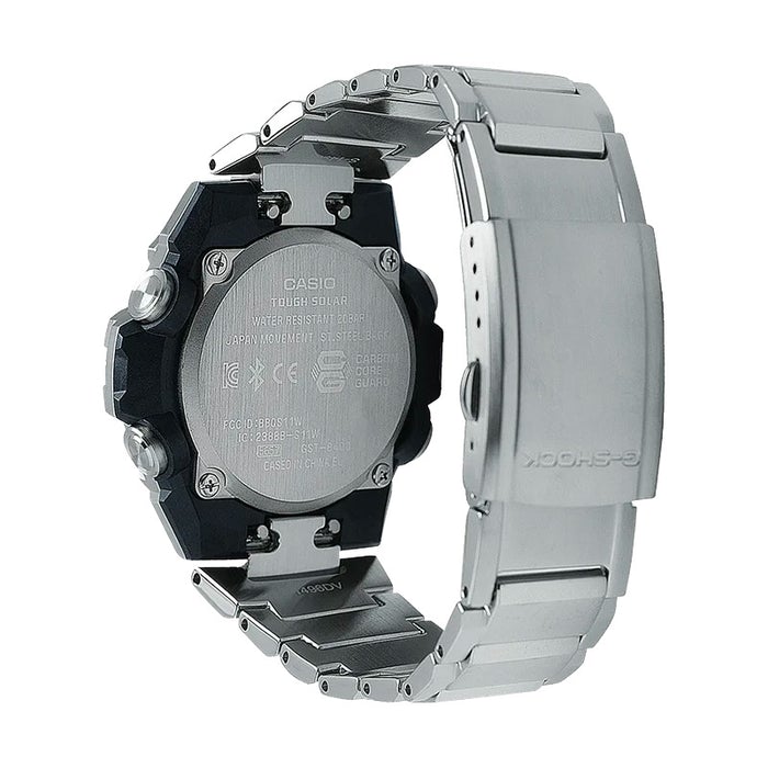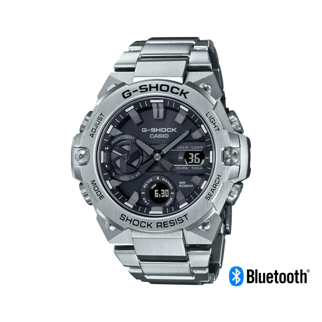 "Introducing new color variations to the lineup of slim G-STEEL GSTB400 models with new, improved designs made possible by a thin module and carbon core guard structure. The GSTB400D-1A is the stainless steel bezel and bracelet models.